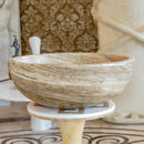 Traonyx (Travertine-Onyx) Natural Stone Above Vanity Bathroom Sink Honed (D)16" (H)6" is Handcrafted in Turkey and suitable for over-countertop installation.