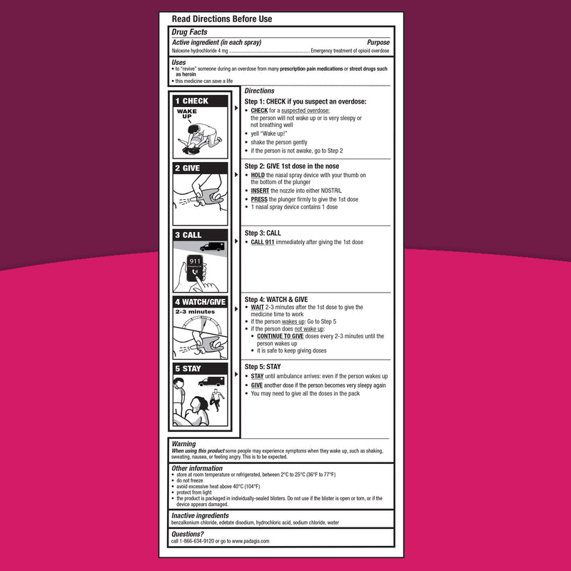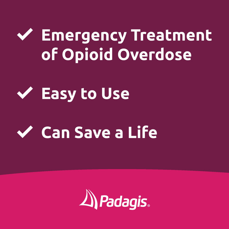 • TRUSTED BY PROFESSIONALS: By equipping individuals with the means to respond to opioid overdoses, Padagis Naloxone HCI Nasal Spray empowers communities to help save lives, offering support in critical moments. Naloxone is trusted by first responders.