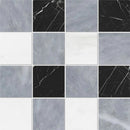 Allure Light Snow White Black 16"x16" Honed Marble 4"x4" Mosaic Tile