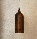 The pendant light has an antique finish, which adds to its aged and rustic appearance.