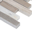 Add a splash of sophistication to your decor with Arctic Storm Interlocking Honed Marble Mosaic Tile. It comes in 12"x12" Mesh.A seemingly random blend of varying-length marble strips forms this 12"x12" mesh-mounted mosaic, infusing your space with a sharp look and contemporary flair. The medium-sheen, smooth-finished tiles from MSI's add definition to any residential or commercial expanse and are versatile enough to be used outside or on a fireplace facade. Also a superb choice for kitchen backsplash or a shower wall accent band, its trendy gray marble tones and honed finish are certain to create a dramatic impact. Note: Inspect all tiles before installation. Natural stone products inherently lack uniformity and are subject to variation in color, shade, finish, etc. It is recommended to blend tiles from different boxes when installing. Natural stones may be characterized by dry seams and pits that are often filled. The filling can work its way out and it may be necessary to refill these voids as part of a normal maintenance procedure. All natural stone products should be sealed with a penetrating sealer. After installation, vendor disclaims any liabilities.