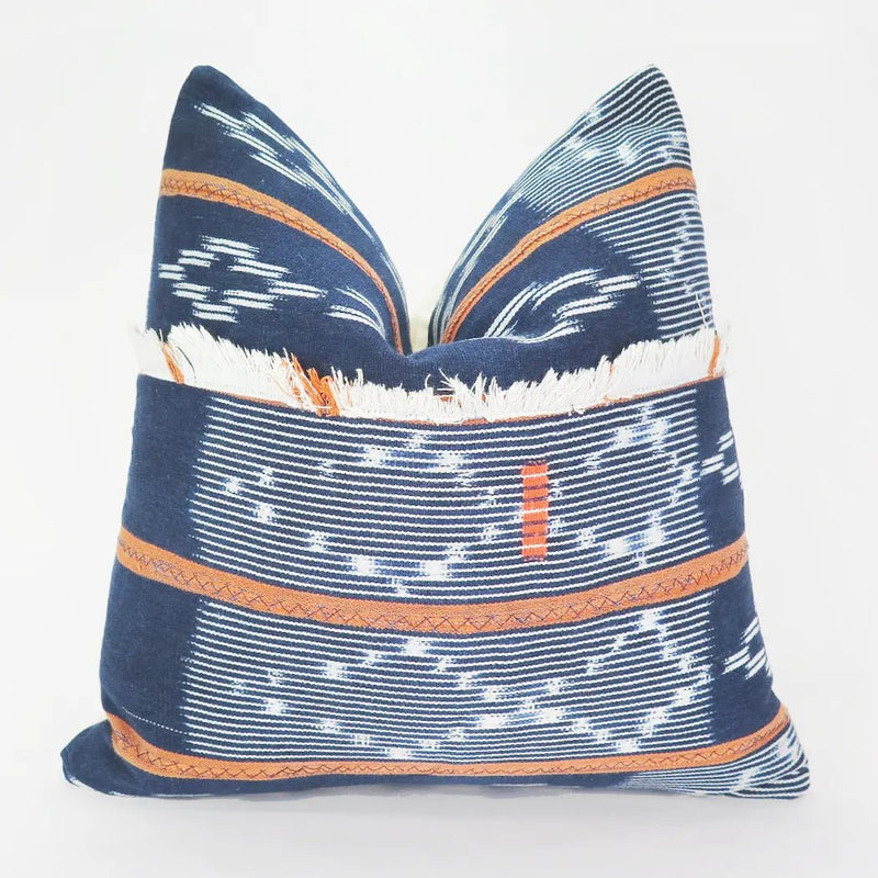 Elevate your home decor with our Blue and Orange Striped Throw Pillow. This beautifully crafted pillow features a dynamic combination of blue and orange stripes with intricate patterns, adding a touch of modern elegance to any space. Made from high-quality materials, it offers both comfort and durability, making it a perfect accent for your sofa, bed, or favorite chair. The unique design and vibrant color palette of this pillow make it an ideal piece to complement various decor styles, from contemporary to eclectic.