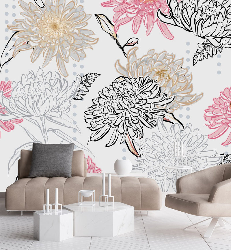 Step into a world of transformative aesthetics with uniQstiQ's Asters Wallpaper. Distinctly different from traditional wallpaper, our murals don't follow the rhythm of repetitive patterns but instead, unfold in a sweeping narrative across your walls. They're created on a grand scale, designed to cover large expanses without the need to piece together patterns or navigate repeating designs.