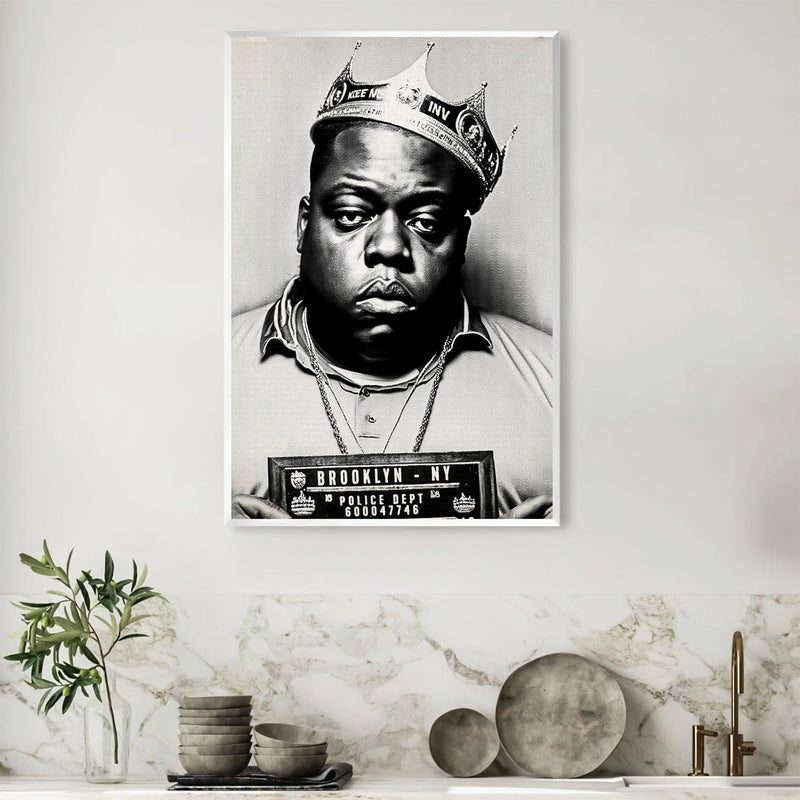 Discover the captivating allure of "Biggie Mugshot Black" canvas wall art, showcasing the iconic rapper in a mesmerizing halftone effect mugshot. This unique and striking artwork perfectly captures the essence of Biggie's larger-than-life persona and enduring musical legacy. The title "Biggie Mugshot Black" aptly describes the artwork, emphasizing the distinct mugshot aesthetic and the classic black-and-white color palette. Elevate your wall decor with this remarkable piece, available as both framed wall art and canvas wall art. Whether you're a devoted fan of Biggie or an appreciator of art that embodies the spirit of hip-hop culture, our "Biggie Mugshot Black" wall art is a must-have addition to your space.