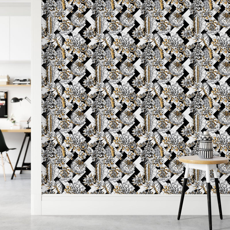 Surround yourself in the warmth and vibrancy of a tropical paradise with uniQstiQ's Black and White Succulents Wallpaper. Inspired by the lush vegetation and radiant atmosphere of Florida, each design encapsulates a touch of Miami heat, inviting the outdoors into your living space. Our wallpaper patterns feature exuberant banana leaves, swaying palm fronds, and an intoxicating jungle theme that perfectly harmonizes with a tropical aesthetic.