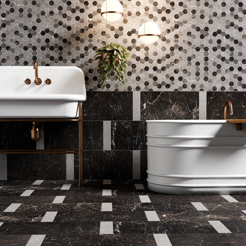 Black Night Textura 10 3/8"x12" Hexagon Marble Mosaic offers;