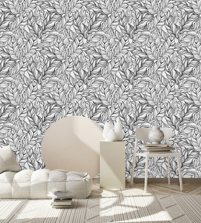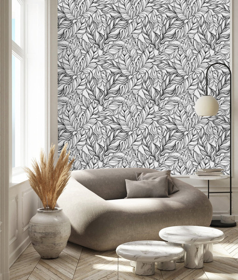 Surround yourself in the warmth and vibrancy of a tropical paradise with uniQstiQ's Black Outlines of Palm Leaves Wallpaper. Inspired by the lush vegetation and radiant atmosphere of Florida, each design encapsulates a touch of Miami heat, inviting the outdoors into your living space. Our wallpaper patterns feature exuberant banana leaves, swaying palm fronds, and an intoxicating jungle theme that perfectly harmonizes with a tropical aesthetic.