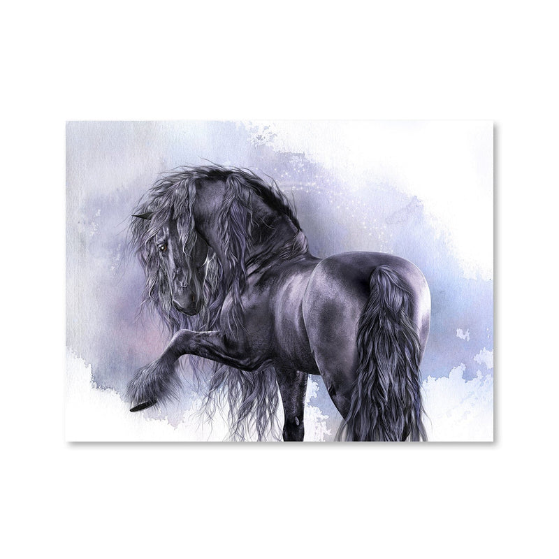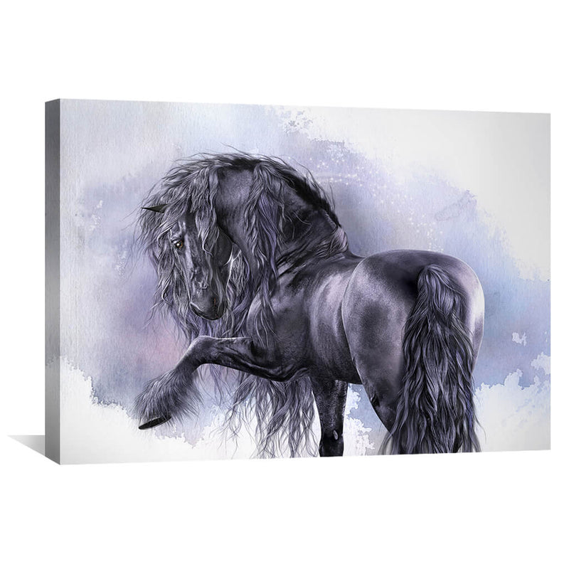 Give any open wall in your home a tasteful touch of glamour with this painting print. This canvas showcases a magical black horse with a smoky background. Artist: Laurie Prindle