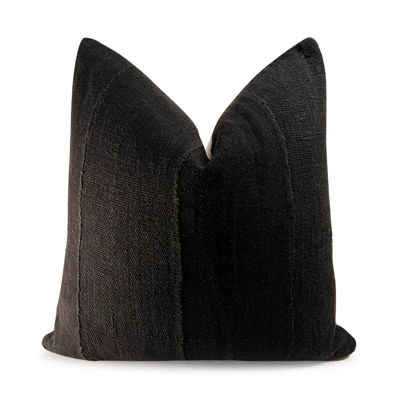 Elevate your home decor with our Black Mudcloth Accent Pillow with Down Fill. This elegant pillow features a deep black hue with a subtle textured pattern, adding a touch of modern sophistication to any space. Crafted from authentic African mudcloth and filled with high-quality down, it offers a luxurious feel and exceptional comfort, making it a perfect addition to your sofa, bed, or favorite chair. The minimalist design and rich color of this pillow make it an ideal piece to complement various decor styles, from contemporary to minimalist.