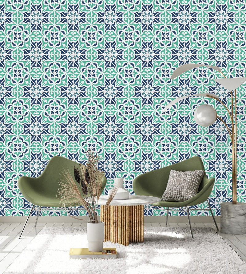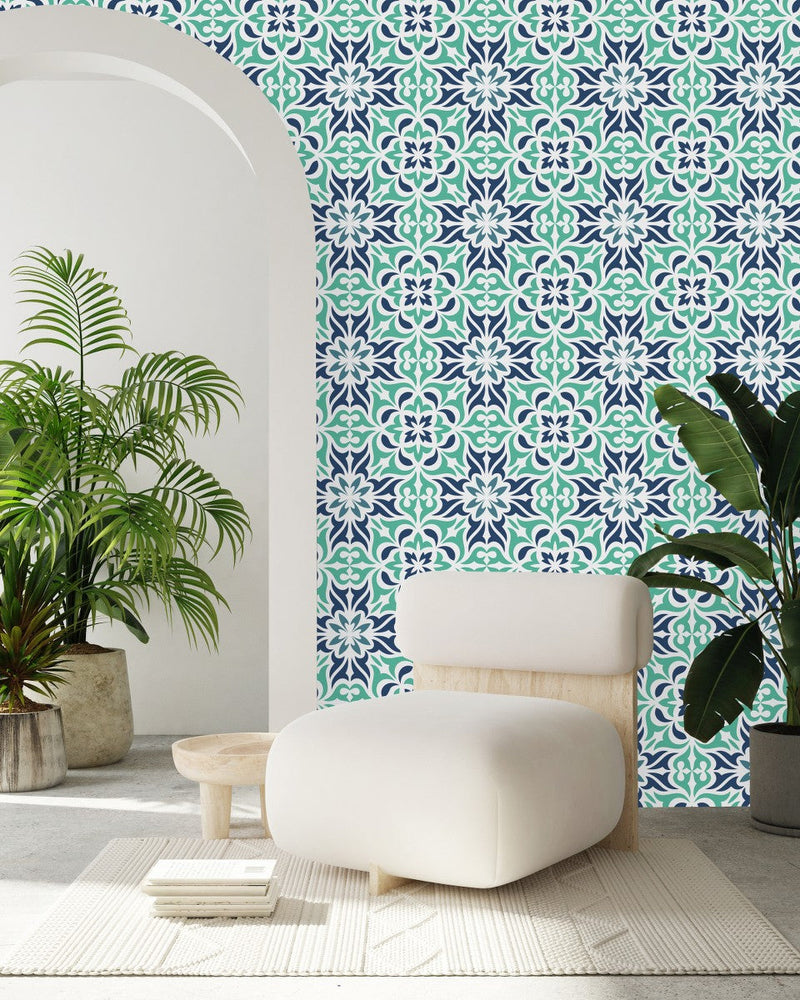 Welcome to uniQstiQ's Blue and Green Pattern Wallpaper, where modern artistry meets effortless installation. Our dynamic patterns are perfect for the contemporary minimalist looking to upgrade their space without leaving any marks on the walls. With our easy-to-install peel-and-stick and pre-pasted options, you can redefine your space as often as the shifting shapes in a kaleidoscope.