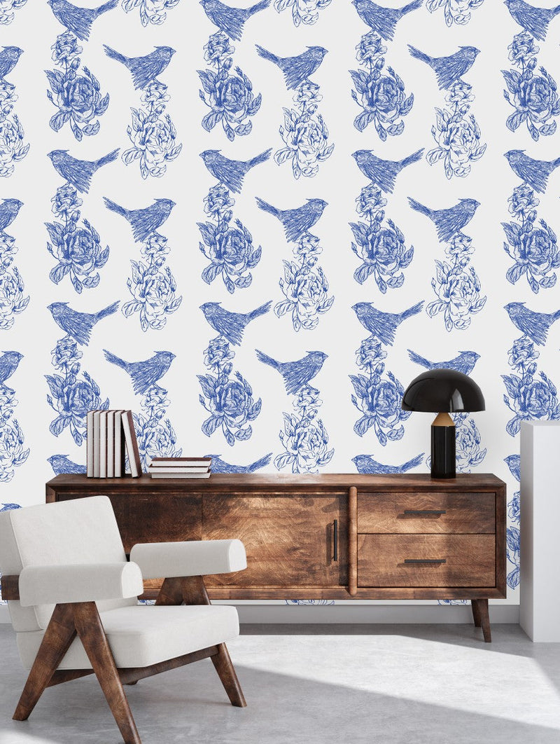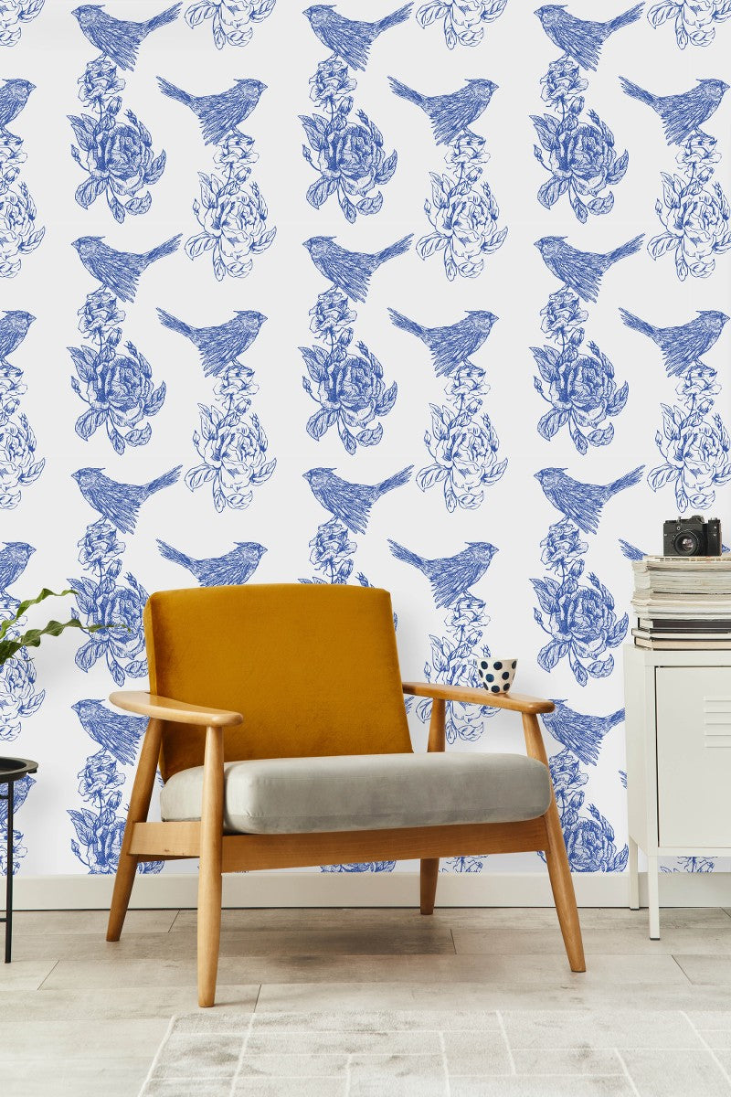Welcome to uniQstiQ's Blue Birds on Flower Wallpaper, where the artistry of nature is delicately woven into each design. Our floral patterns are a breath of fresh air for anyone wishing to rejuvenate their space without marring their walls. With our bloom-ready peel-and-stick and pre-pasted options, you can transform your home as frequently as flowers change with the seasons.