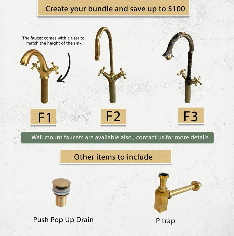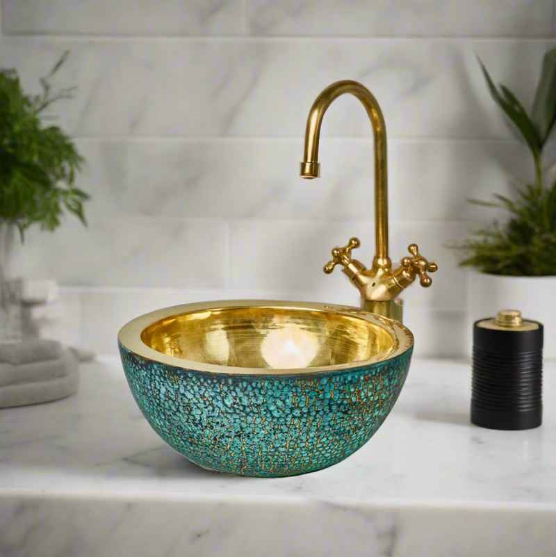Brass Vessel Sink For Bathroom, Blue Patina Brass Sink with Faucet