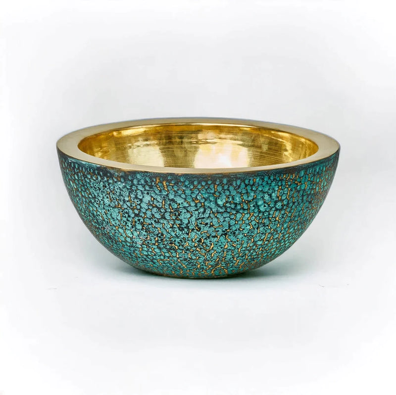 Brass Vessel Sink For Bathroom with blue antique brass while it's polished from the inside to make it a decor must-have. Made of a pure brass sheet with a double wall design giving extra sturdiness. It can be paired with various faucets to give an enriching look to your bathroom.