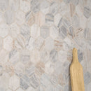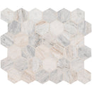 Add subtle color and a touch of elegance to your space with Capri Blue 2” Hexagon Mosaic Tile. A fresh take on the classic hexagon shape, this tile is suitable for various wall applications, and floor applications in residential settings. Featuring a light grey and cream palette accentuated by subtle veining in blues and gold, this genuine marble tile brings your kitchen backsplash, fireplace façade, shower surround, bathroom vanity wall and more to life. Not only gorgeous, but also durable and low maintenance, Capri Blue 2” Hexagon Mosaic Tile updates your space with contemporary sophistication. Tiles are strategically arranged on mesh backed sheets for simplified installation and professional look.