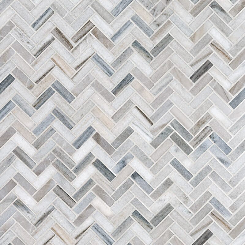 Citylight Honed 12 1/8"x13 3/8" Herringbone 5/8x2 Marble Mosaic