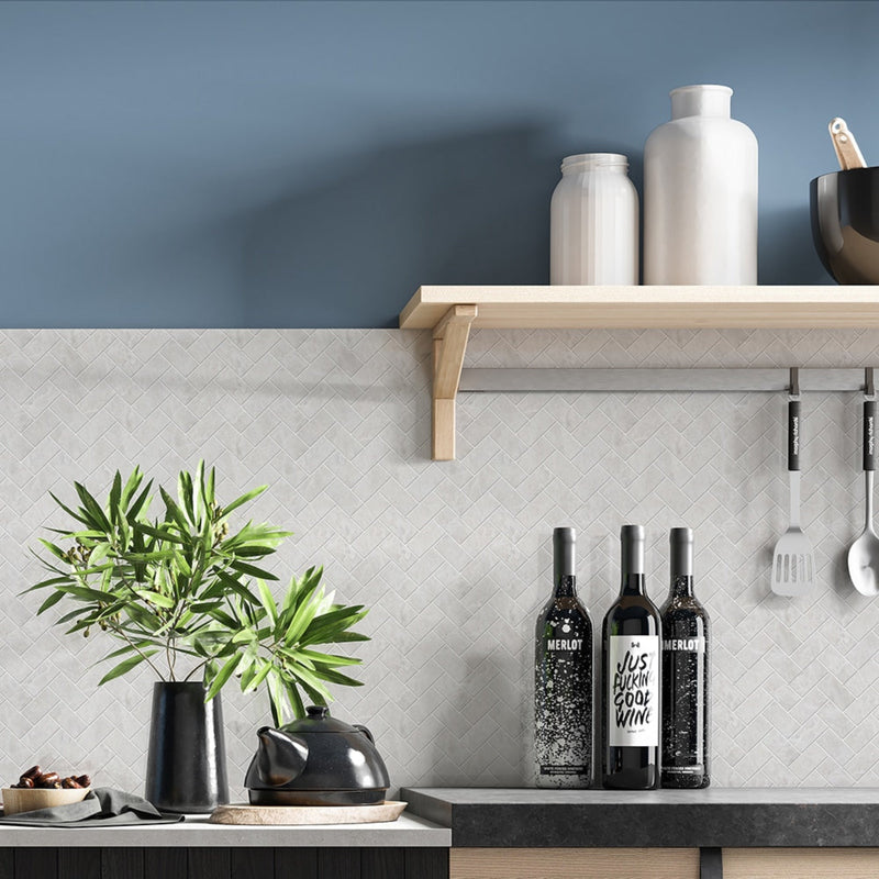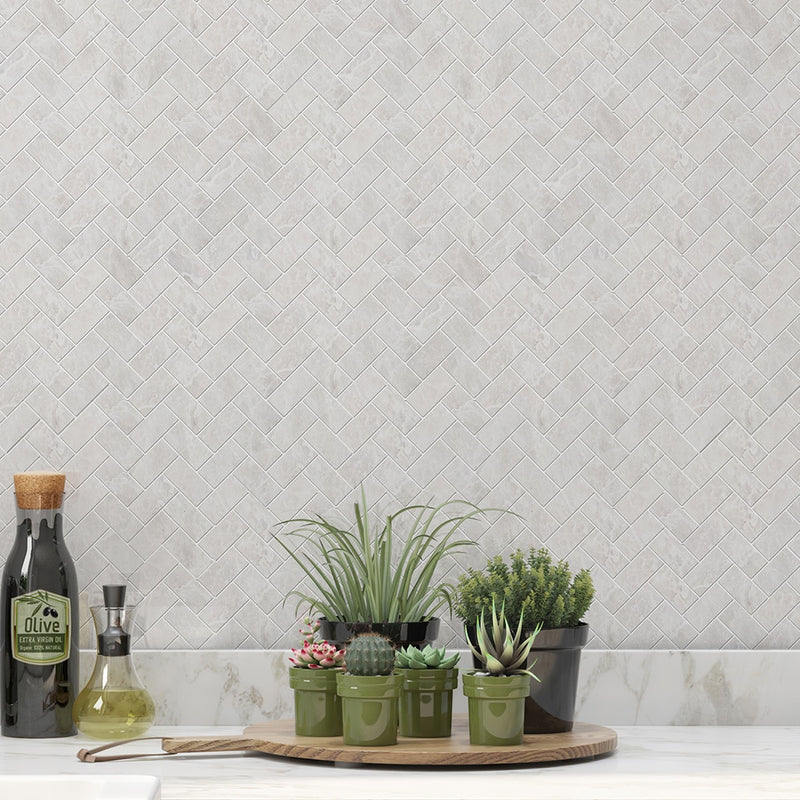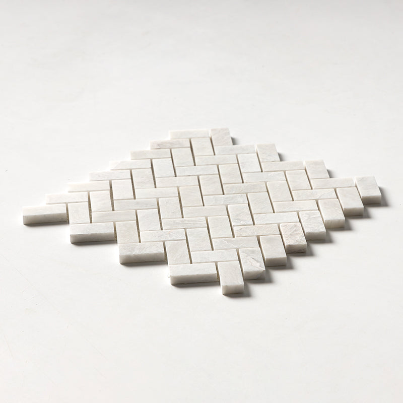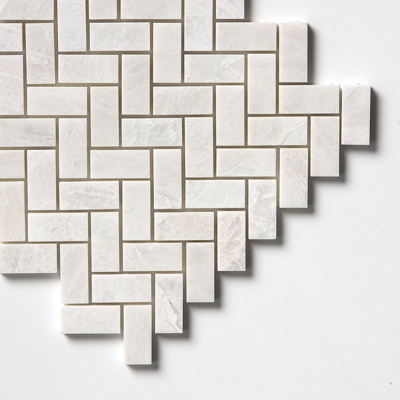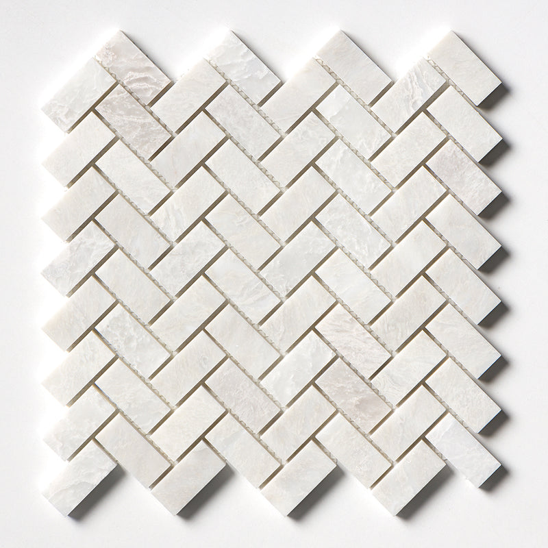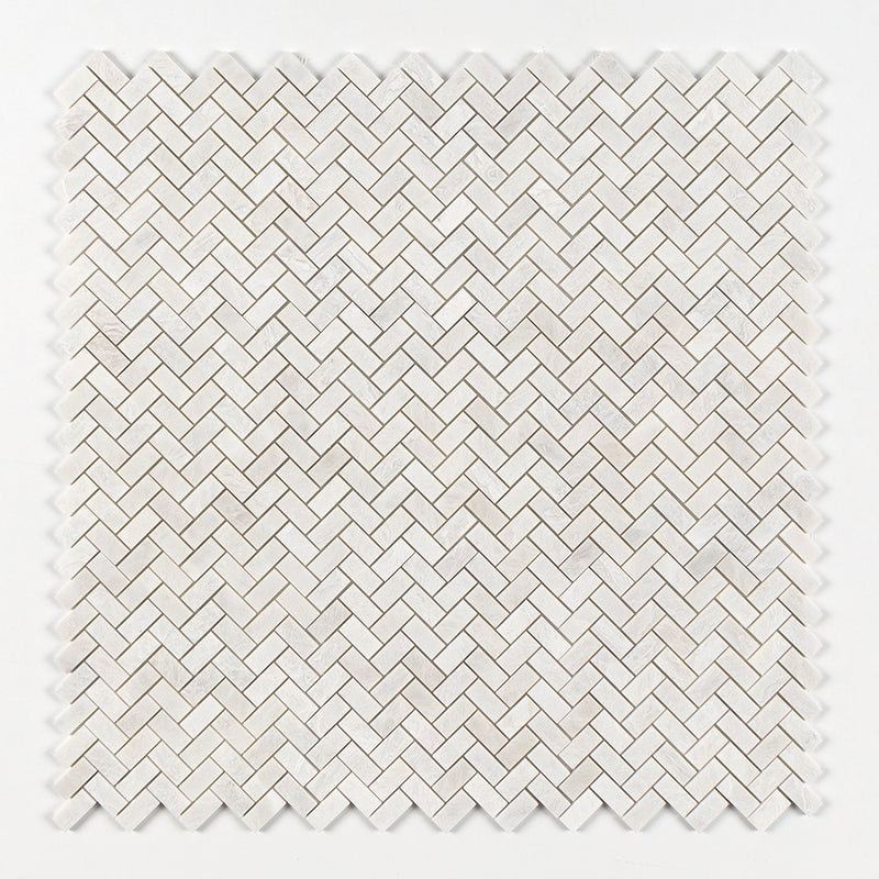 Clear Ice Polished 11"x11" Herringbone 1"x2" Marble Mosaic