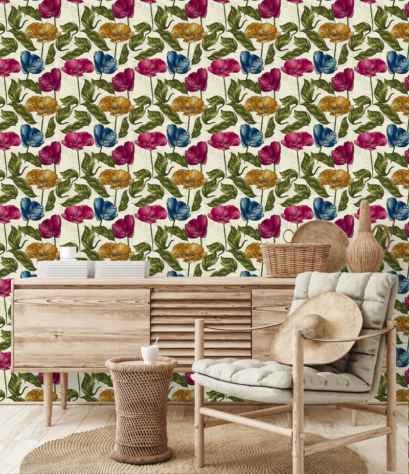 Welcome to uniQstiQ's Colorful Poppies Wallpaper, where the artistry of nature is delicately woven into each design. Our floral patterns are a breath of fresh air for anyone wishing to rejuvenate their space without marring their walls. With our bloom-ready peel-and-stick and pre-pasted options, you can transform your home as frequently as flowers change with the seasons.