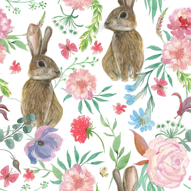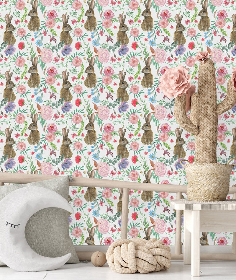 Contemporary Hares between Flowers Wallpaper Sophisticated