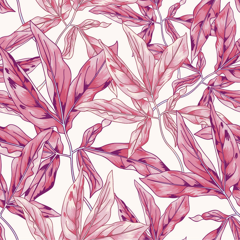 Contemporary Pink Leaves Wallpaper Smart