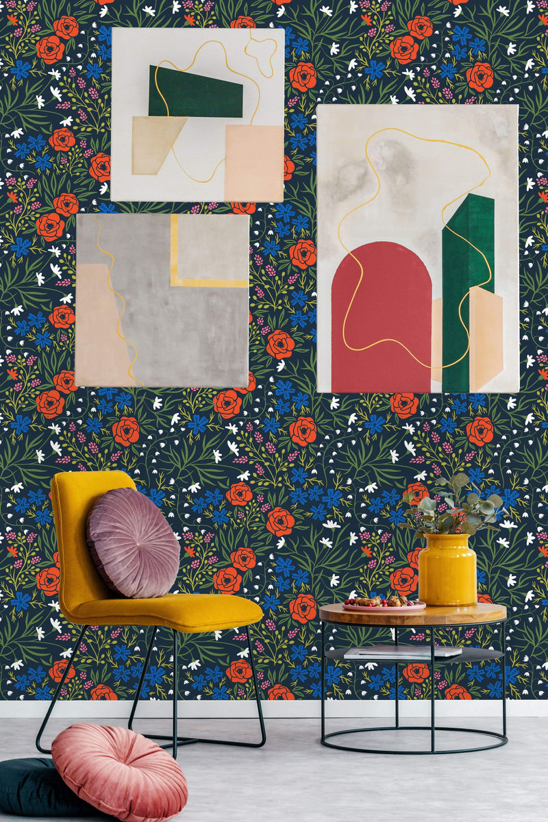Made with love in the USA from USA produced materials, our floral wallpapers bloom with quick shipping and high quality. Our designs do more than brighten your space; they're also safe for your indoor environment. Thanks to our Greenguard Gold certified inks, we promise our products are as gentle as morning dew. The meticulous 25-inch drop repeat in our patterns promises continuity as seamless as a garland of marigolds.