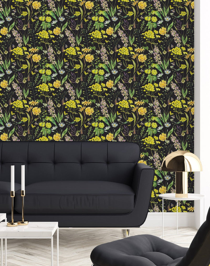 Welcome to uniQstiQ's Dark Wallpaper with Yellow Flowers, where the artistry of nature is delicately woven into each design. Our floral patterns are a breath of fresh air for anyone wishing to rejuvenate their space without marring their walls. With our bloom-ready peel-and-stick and pre-pasted options, you can transform your home as frequently as flowers change with the seasons.