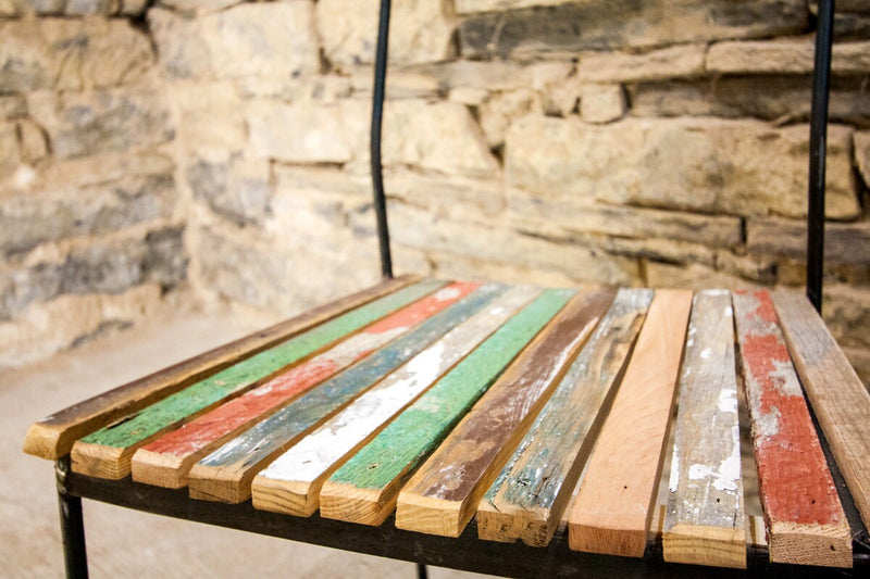 Shown here with a colorful reclaimed and cottage chic chippy paint wood seat sealed with a clear coat of lacquer, but as always, custom sizing, woods and finishes are available!