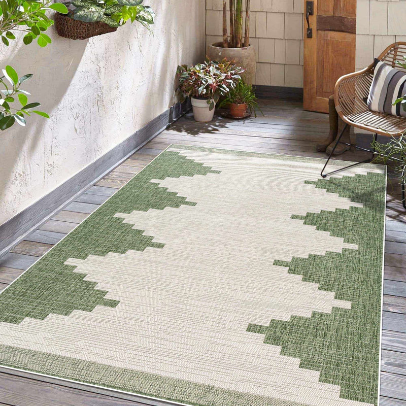 About: This outdoor suitable performance rug showcases a striking Aztec-inspired geometric pattern, perfect for adding a touch of cultural flair to any patio or deck space. Its flat, no-pile design ensures durability and ease of cleaning, making it ideal for high-traffic outdoor areas. The rug's intricate design, coupled with its practicality, makes it an excellent choice for those seeking a blend of style and function in their outdoor decor. With its distinct pattern, this rug serves as a focal point, effortlessly enhancing the aesthetic of any outdoor setting. |