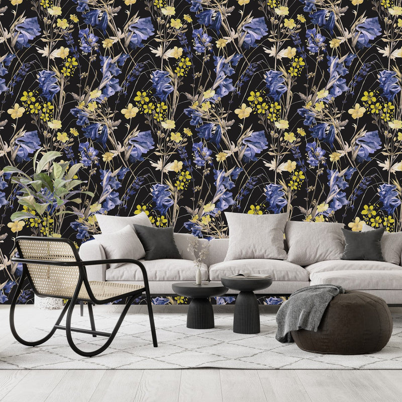 Welcome to uniQstiQ's Dark Wildflowers Wallpaper, where the artistry of nature is delicately woven into each design. Our floral patterns are a breath of fresh air for anyone wishing to rejuvenate their space without marring their walls. With our bloom-ready peel-and-stick and pre-pasted options, you can transform your home as frequently as flowers change with the seasons.