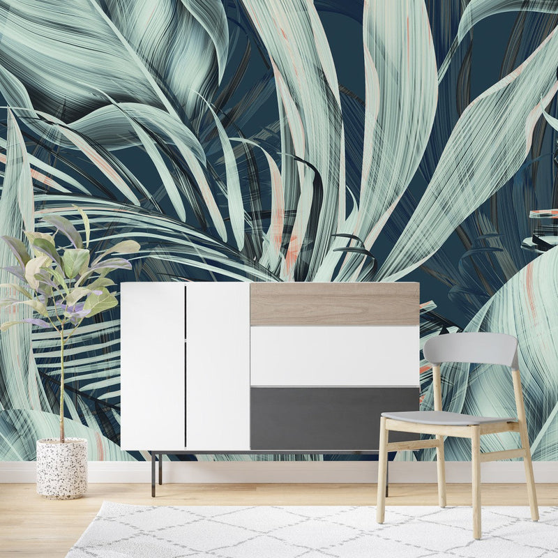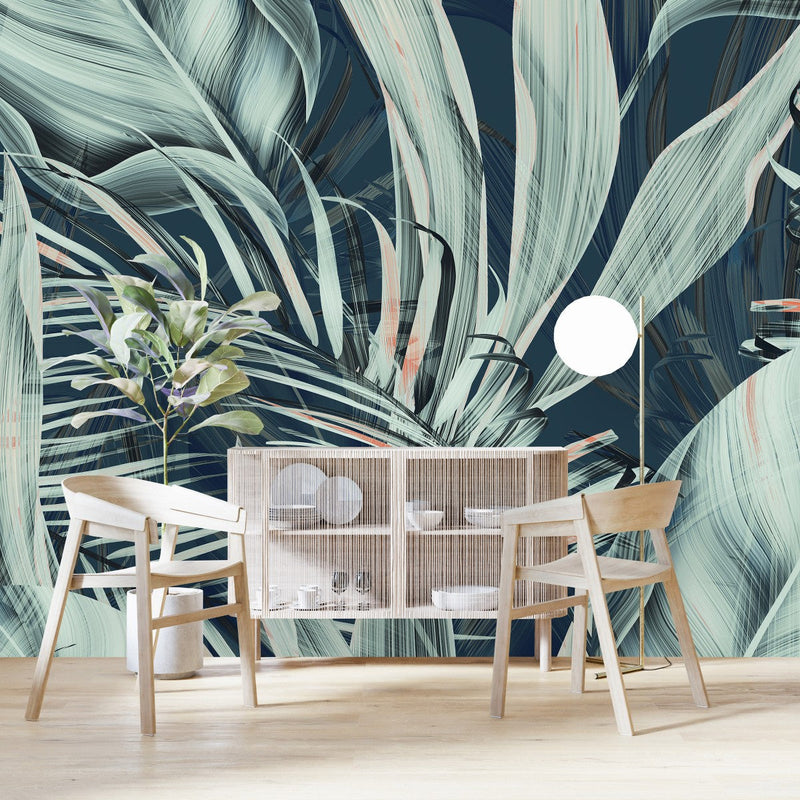 Welcome to the grandeur of uniQstiQ's Palm Leaves Wallpaper. These majestic pieces elevate beyond the size of our standard murals, offering a monumental scale for those who crave even more visual impact. Each long mural unfolds a stunning narrative across your walls, free from the constraints of repetition, making each inch of your space a unique spectacle.
