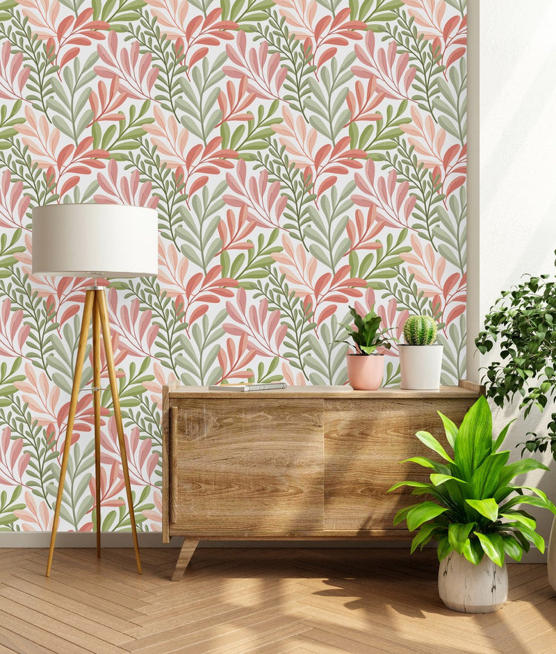 Step into a green escape with uniQstiQ's Pink and Green Leaves Wallpaper. Adorned with enchanting vine and leaf patterns, this range of wallpapers effortlessly translates the serene beauty of nature onto your walls. Our pre-pasted and peel-and-stick options are as delicate with your walls as a butterfly alighting on a leaf.