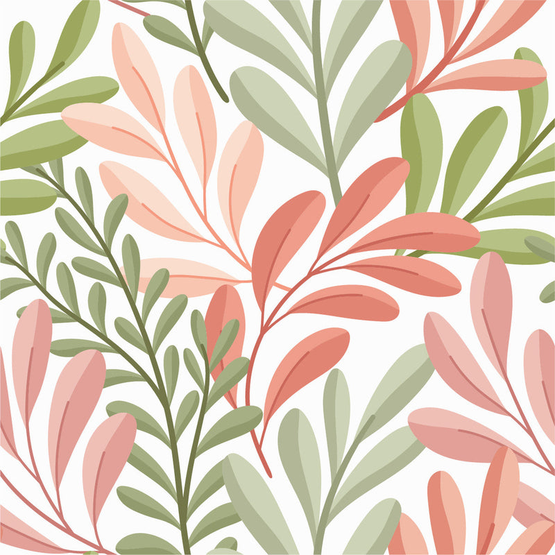 Elegant Pink and Green Leaves Wallpaper Tasteful
