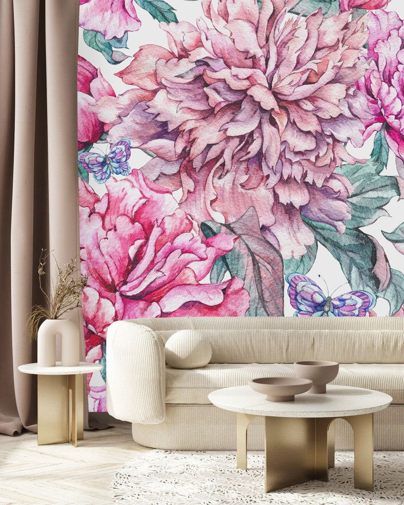 Step into a world of transformative aesthetics with uniQstiQ's Pink Large Peonies Wallpaper. Distinctly different from traditional wallpaper, our murals don't follow the rhythm of repetitive patterns but instead, unfold in a sweeping narrative across your walls. They're created on a grand scale, designed to cover large expanses without the need to piece together patterns or navigate repeating designs.