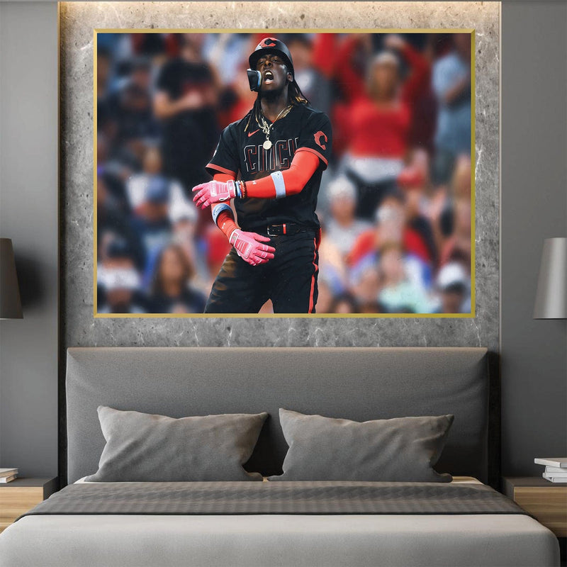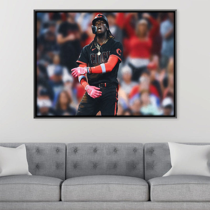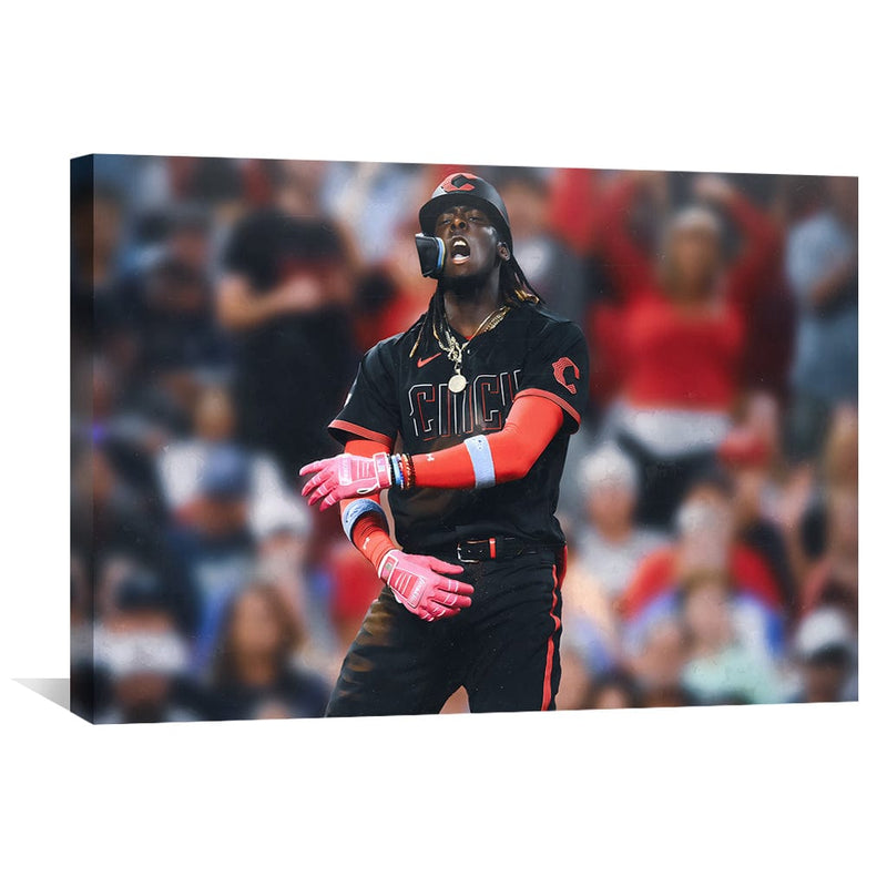 Infuse your space with the electric spirit of our "Elly Celly" canvas wall art. This captivating baseball sport design showcases the exhilarating celebration of Elly De La Cruz. Crafted in a dynamic blend of black, red, and white hues, the artwork perfectly encapsulates the intensity and passion of the game's triumphant moments. The title reflects the essence of Elly's celebratory gesture, capturing the essence of her enthusiasm in a single snapshot. Available as both canvas wall art and framed wall art options, this piece is a must-have for sports enthusiasts and art aficionados alike.