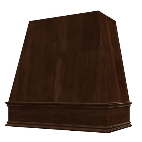 Espresso Wood Range Hood With Tapered Front and Decorative Trim - 30", 36", 42", 48", 54" and 60" Widths Available