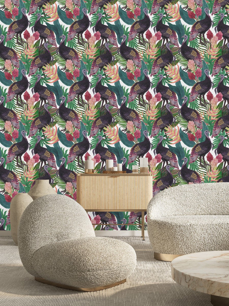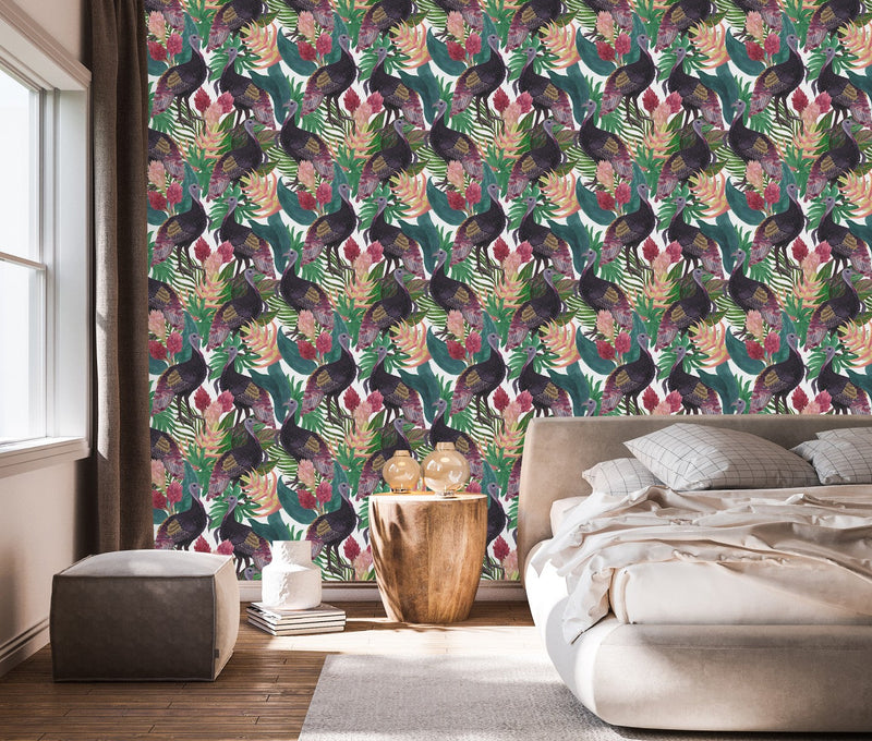 Surround yourself in the warmth and vibrancy of a tropical paradise with uniQstiQ's Exotic Birds and Plants Wallpaper. Inspired by the lush vegetation and radiant atmosphere of Florida, each design encapsulates a touch of Miami heat, inviting the outdoors into your living space. Our wallpaper patterns feature exuberant banana leaves, swaying palm fronds, and an intoxicating jungle theme that perfectly harmonizes with a tropical aesthetic.