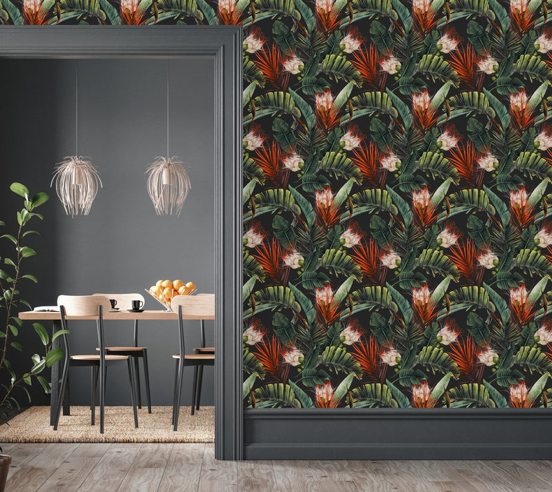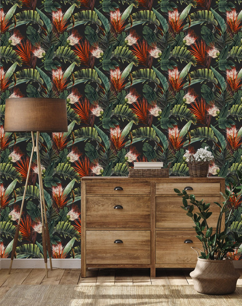 Surround yourself in the warmth and vibrancy of a tropical paradise with uniQstiQ's Exotic Plants and Flowers Wallpaper. Inspired by the lush vegetation and radiant atmosphere of Florida, each design encapsulates a touch of Miami heat, inviting the outdoors into your living space. Our wallpaper patterns feature exuberant banana leaves, swaying palm fronds, and an intoxicating jungle theme that perfectly harmonizes with a tropical aesthetic.