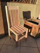 Crafted from 100% solid redwood, these chairs are built to last and withstand the elements, ensuring long-term durability and resilience. Whether used for outdoor dining or indoor décor, these chairs provide lasting value and aesthetic appeal.