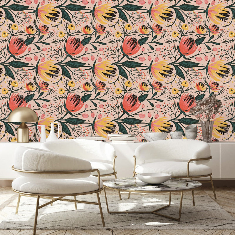 Made with love in the USA from USA produced materials, our floral wallpapers bloom with quick shipping and high quality. Our designs do more than brighten your space; they're also safe for your indoor environment. Thanks to our Greenguard Gold certified inks, we promise our products are as gentle as morning dew. The meticulous 25-inch drop repeat in our patterns promises continuity as seamless as a garland of marigolds.