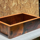 Hammered Copper Apron Front Single Kitchen Basin Sink -Onyx