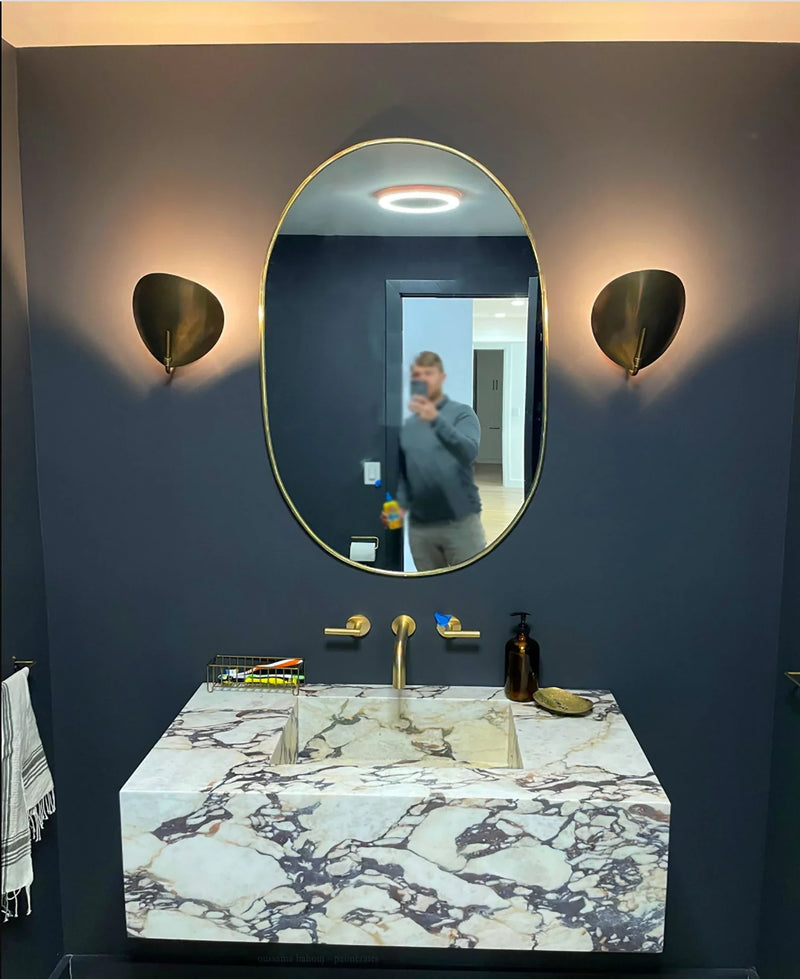 This handmade mirror reflects your refined taste and attention to detail. It serves as a focal point, adding depth and visual interest to your space. The combination of the oval shape and brass frame creates a captivating design that captures the essence of modern craftsmanship.