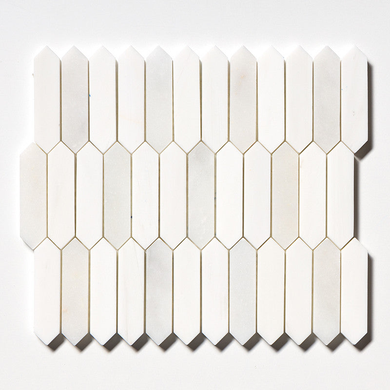 Ice white 13 3/16"x11" Afyon White Multi Finish Baby Picket Marble Mosaic offers;