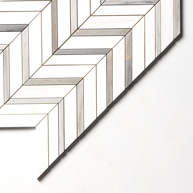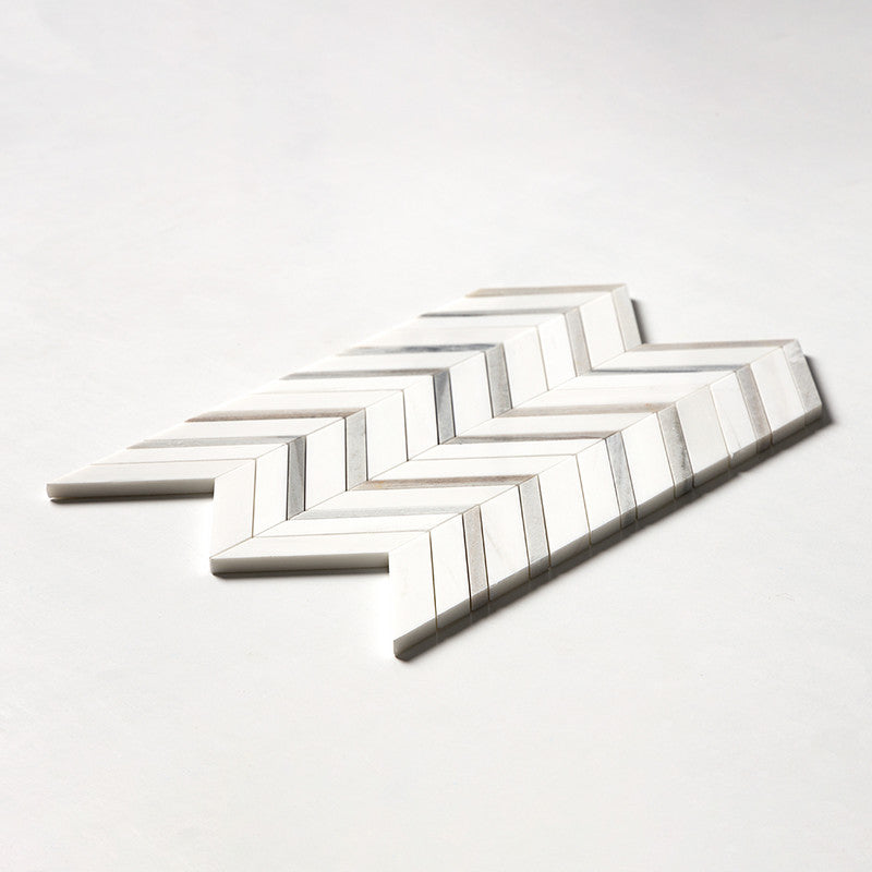 Ice white 16"x11 7/8" Skyline Polished Chevron Fusion Marble Mosaic
