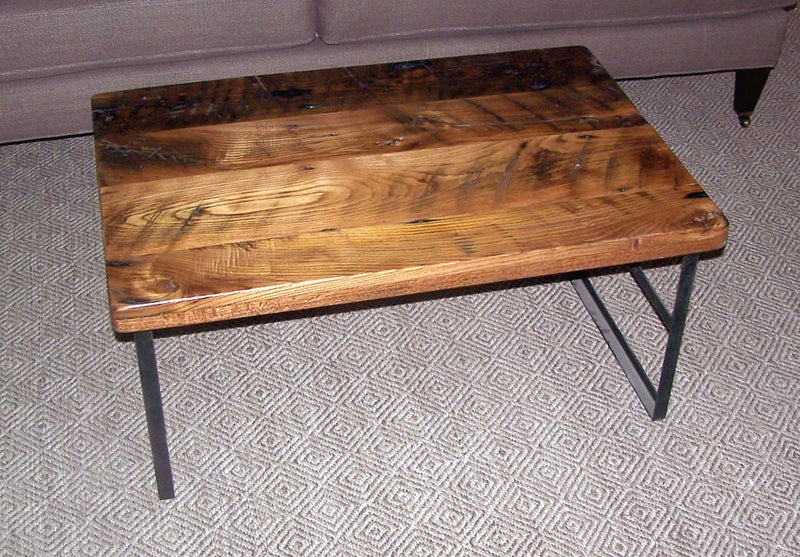 A perfect living-room accent piece, our custom built coffee table with an industrial style welded metal base provides a contemporary blend of old and new for a sensible modern design at home in any decor!