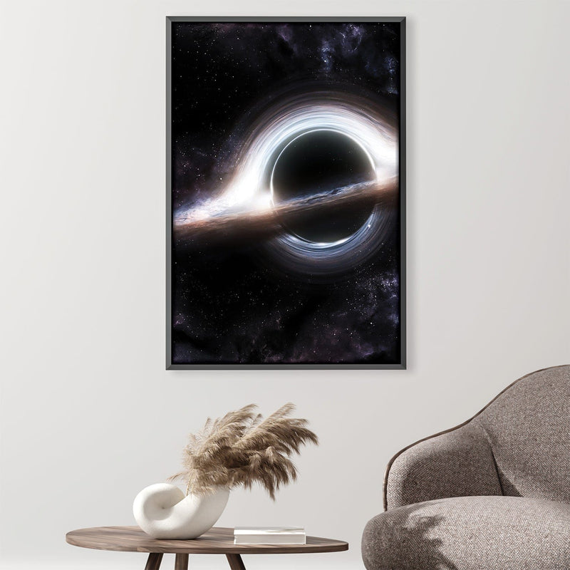 Make your wall pop with artwork from Interstellar! This artwork will show off enthusiasm for your favorite movie. Using black, white, and purple, this print draws attention to any room. Add this design to give your walls a special look! Our canvases come in many types and sizes, so customize what is best for you.