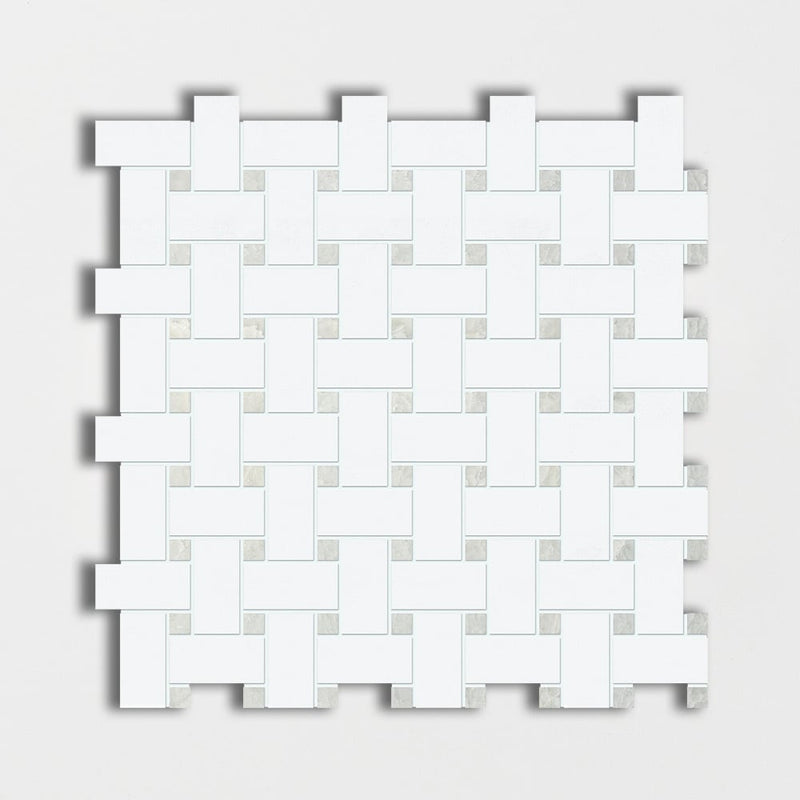 Jade Green White & ming Green 12"x12" Polished Basket Weave Marble Mosaic