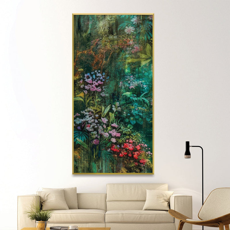Presenting “Jungle Flowers”, an enchanting piece of canvas wall art that encapsulates the vibrant beauty of the wilderness. This abstract art painting, with its textured effect, portrays a vivid array of colorful flowers nestled in the heart of the jungle. The use of red, yellow, and green colors brings the artwork to life, creating a visual feast for the eyes. The title “Jungle Flowers” perfectly encapsulates the essence of this piece, symbolizing the burst of color and life found within the depths of the jungle. Whether you’re seeking wall art to infuse your space with color, or a framed wall art piece to serve as a conversation starter, this canvas wall art is an ideal selection. Immerse yourself in the vibrant world of “Jungle Flowers”.