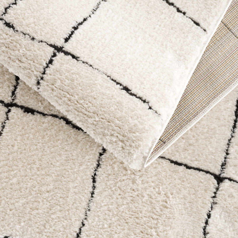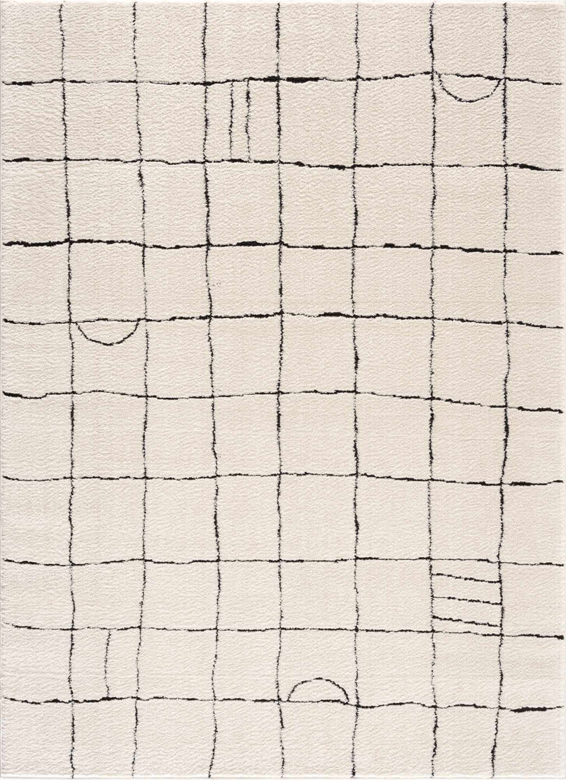 About: This rug boasts a hand-drawn design with a natural grid pattern and fun geometric elements, adding effortless style to any space. It's a versatile piece that can serve as a minimalist foundation or be layered for an eclectic look. |