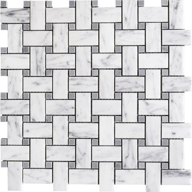 Keefer Mix Bardiglio 12"x12" Polished Basket Weave Marble Mosaic