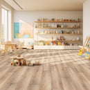 Brighten up the room with Hyde Haven Luxury Vinyl Planks. These 9” x 48” LVPs feature an array of stylish honey hues and sandy shades with hints of chestnut, infused knots and grains for an authentic wood look. With a 5MM thickness, inclusive of a 4MM core and 1MM attached pad, these planks are extremely comfortable underfoot and provide ultimate durability. Its 20MIL protection layer aids against the everyday wear and tear of bustling households and office spaces. This 100% waterproof vinyl plank flooring is highly versatile, especially when paired with an easy install locking system and innovative "no acclimation" technology, which allows you to buy and install on the same day. Add a glowing touch to kitchens, bathrooms, bedrooms, and more with these lavish planks. Enhance your interiors with Hyde Haven’s peace of mind warranties, including a lifetime limited residential warranty, a 15-year limited light commercial warranty, and a 10-year limited commercial warranty. This collection is endorsed by certifications like GREENGUARD Gold, FloorScore®, and LEED, assuring its environmental safety and suitability for your entire family.