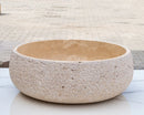 Light Beige Travertine Above Vanity Bathroom Sink Rustic Outside (D)16" (H)6"- Modern Aesthetic Travertine Round Sink Handcrafted in Turkey. It can be used above-vanity.